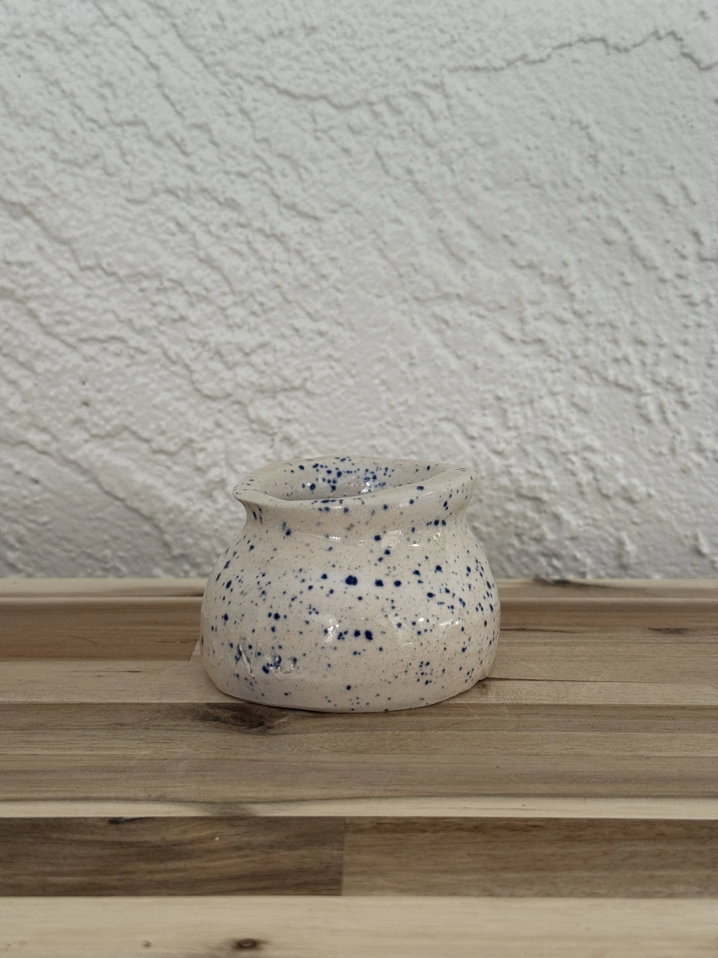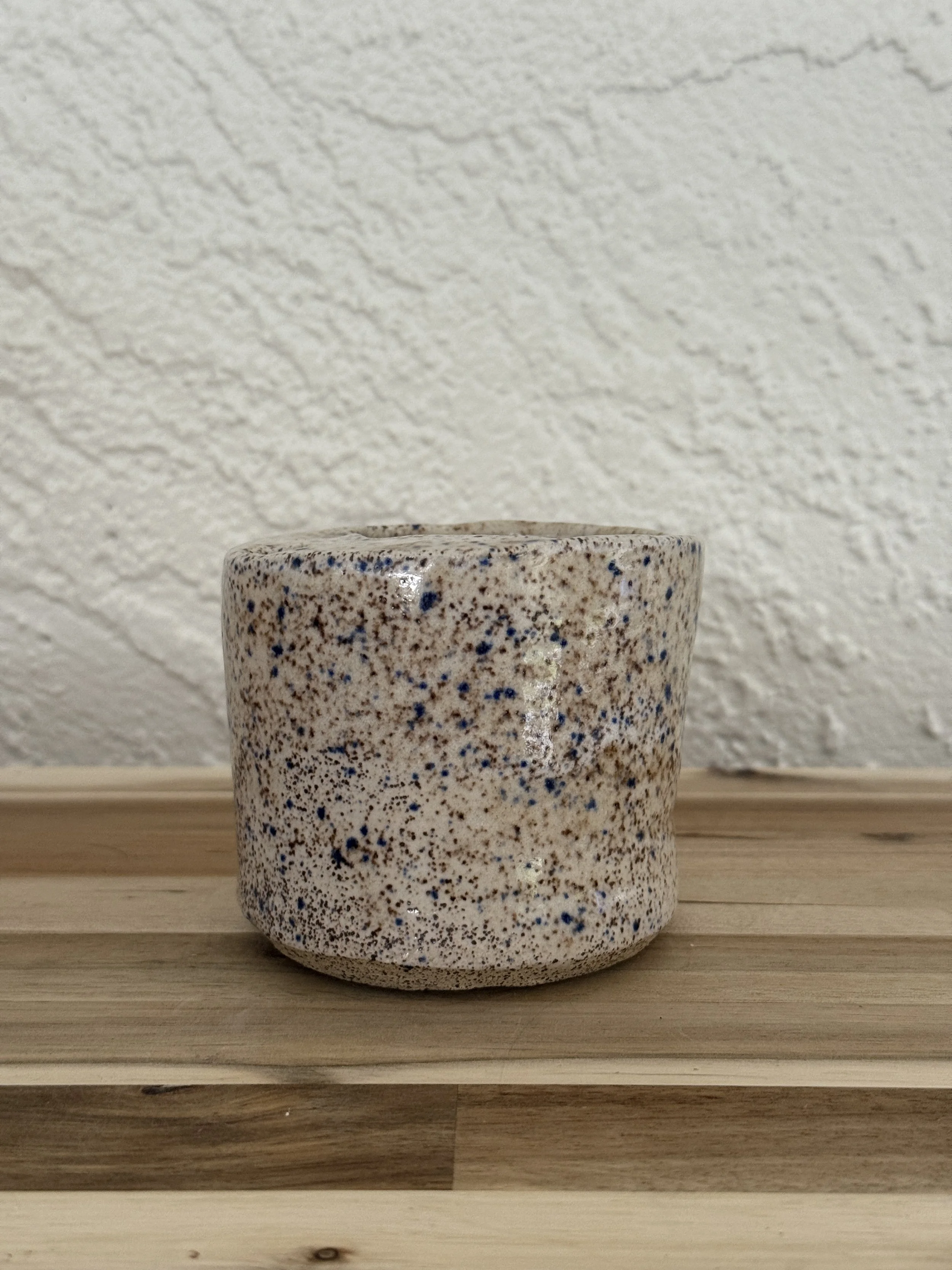 Categories: All Mugs To Go Cups Regular Cups Bowls Other All / Other Small blue speckled vase $10.00 Blue speckled planter $10.00