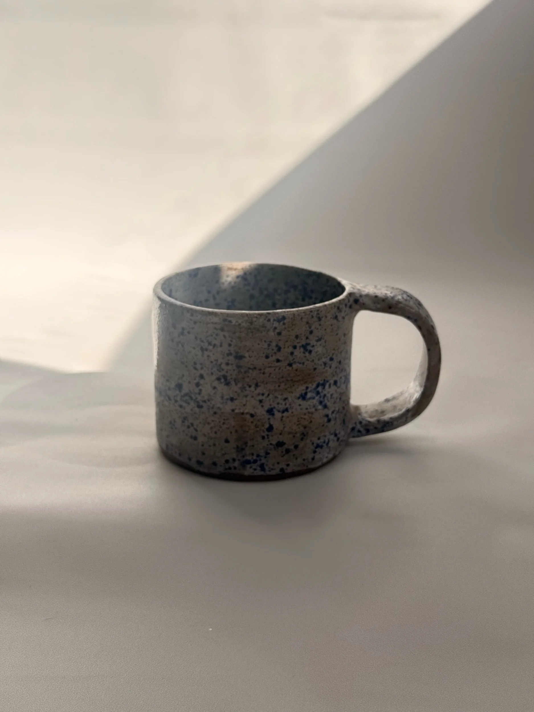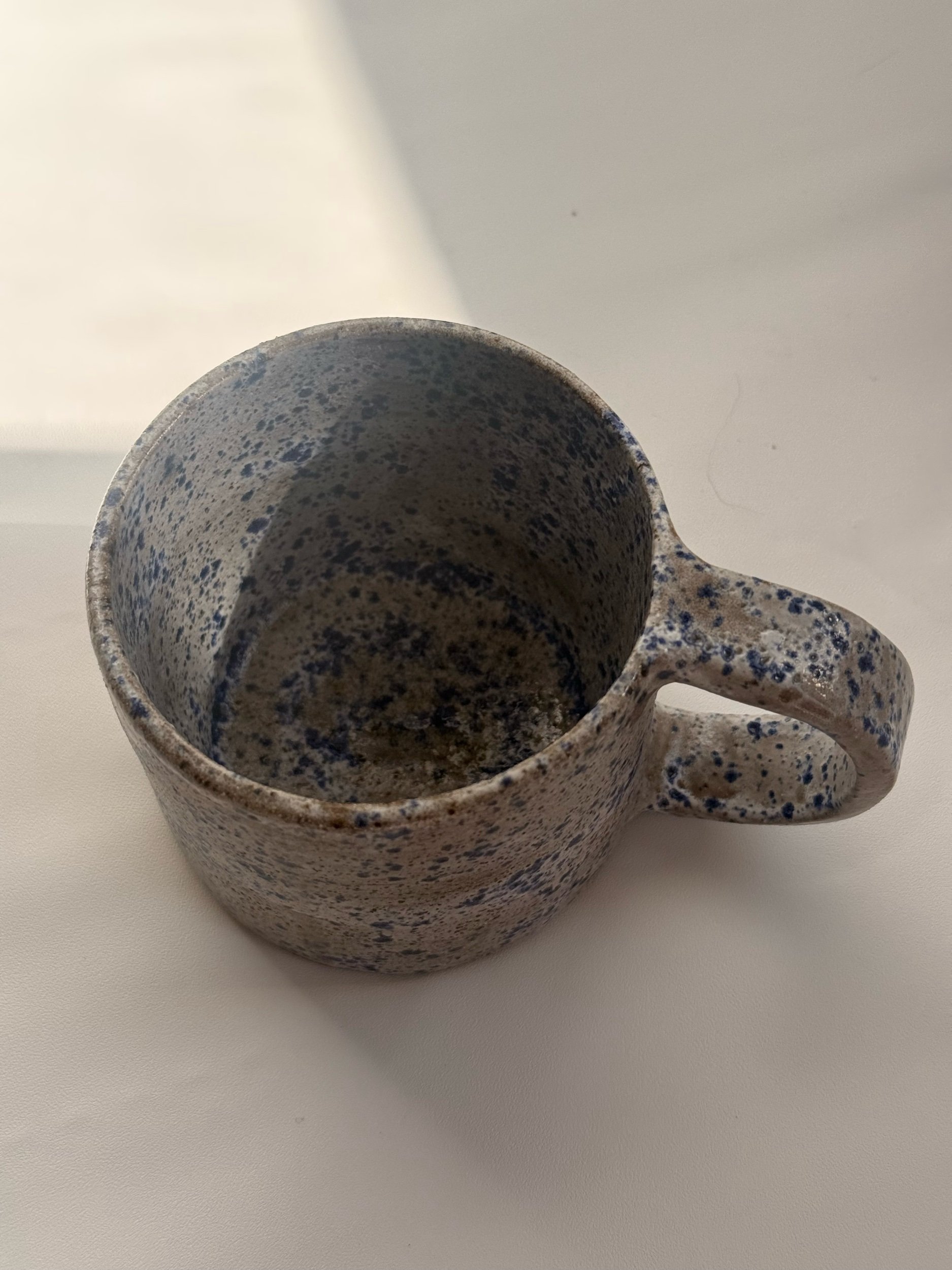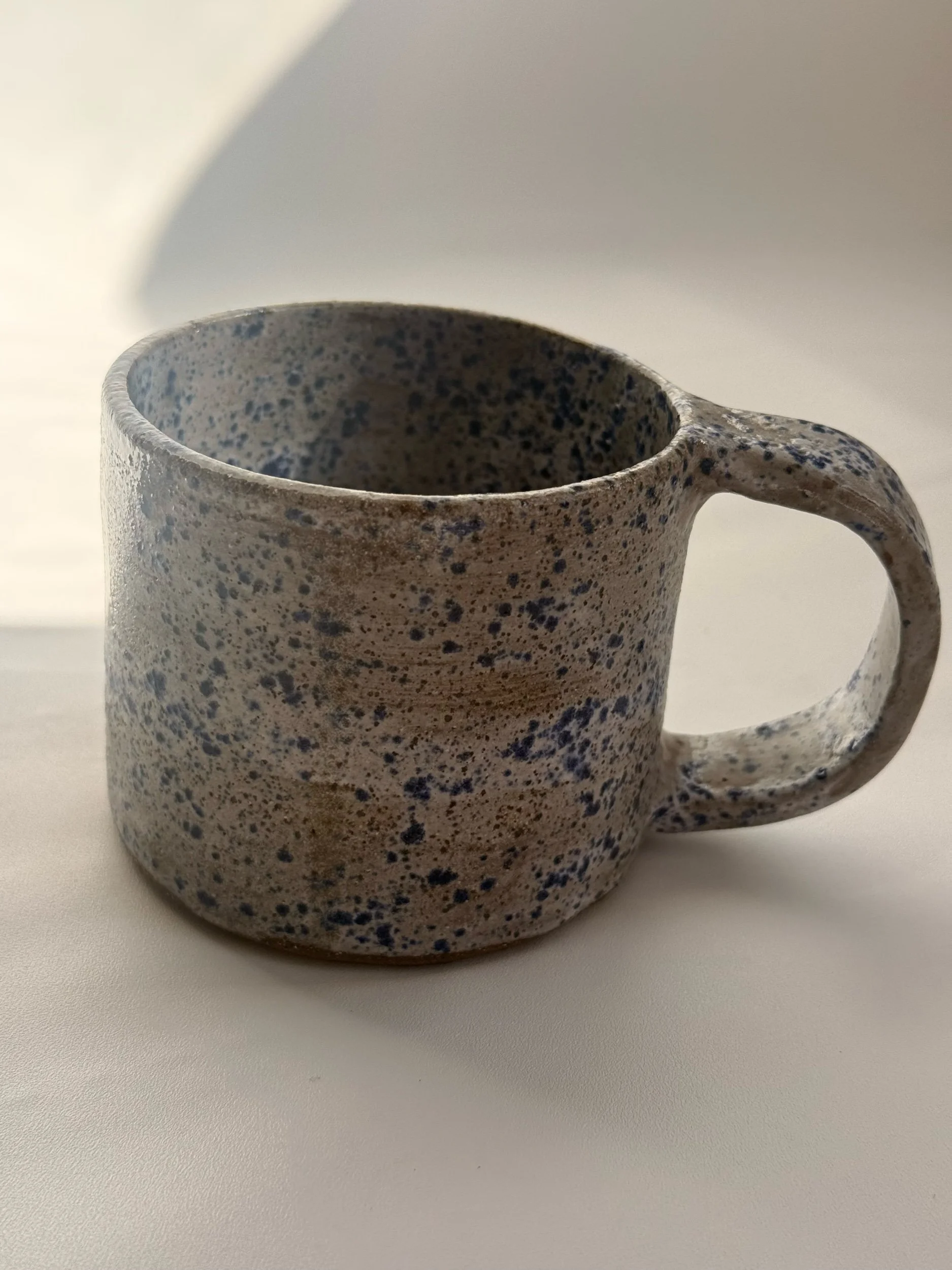 Store › Blue Speckled Mug Image 1 of 4 Image 2 of 4 Image 3 of 4 Image 4 of 4 Blue Speckled Mug $18.00 Brown ceramic mug with white glaze with blue speckles12 oz cup Add To Cart Added! Brown ceramic mug with white glaze with blue speckles12 oz cup
